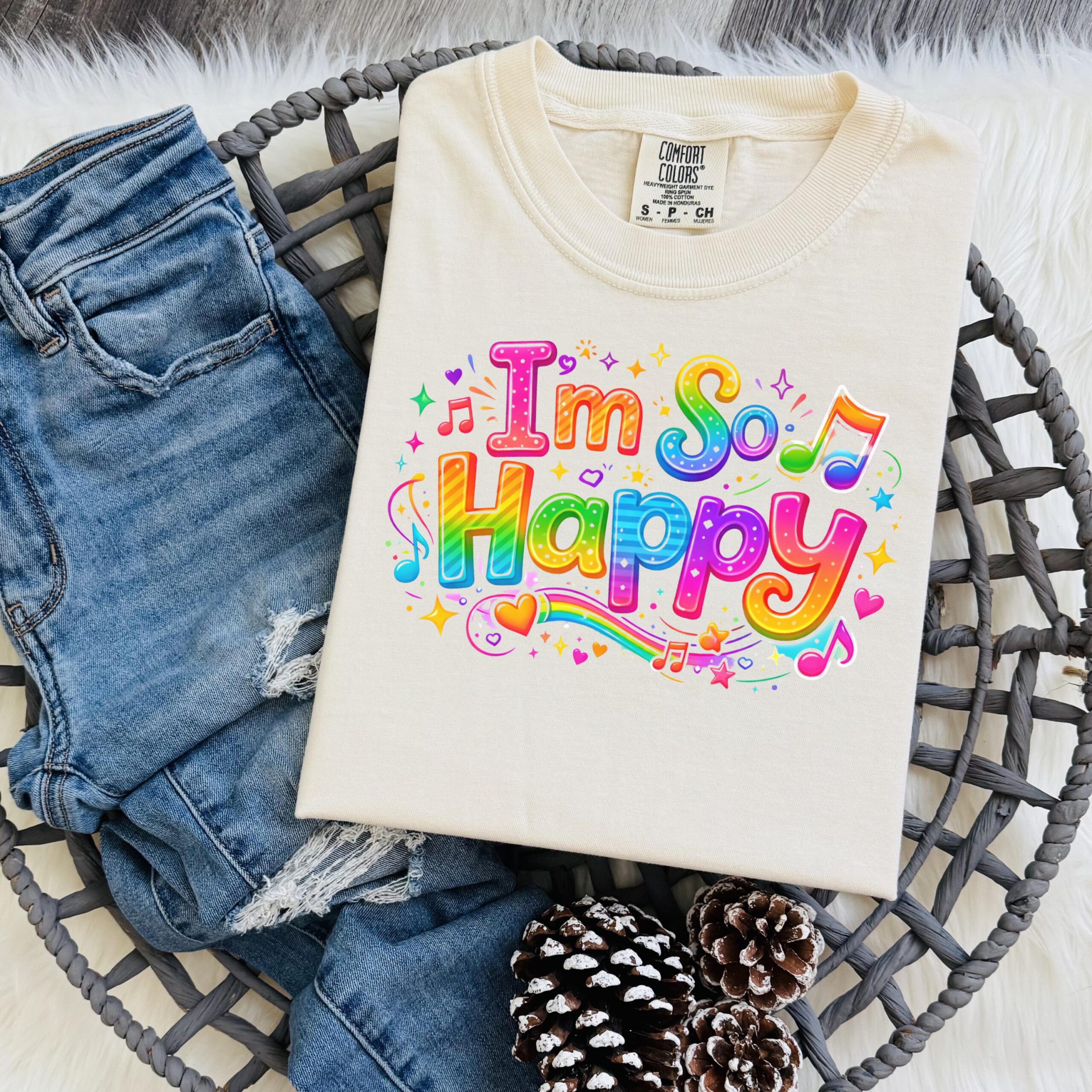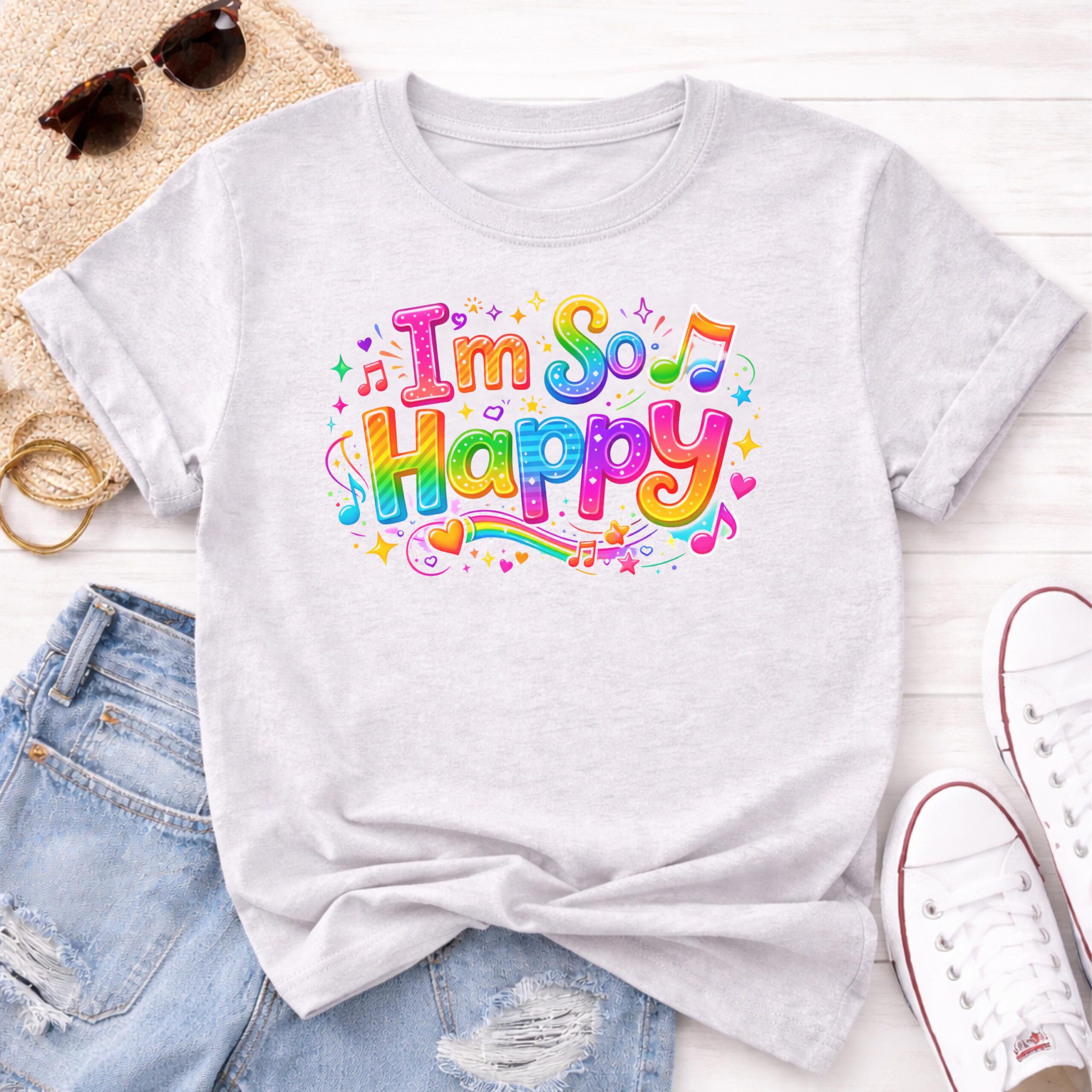 Spread smiles and positive vibes with this adorable I’m So Happy rainbow shirt! Inspired by the popular children’s song everyone loves, this cheerful design features bright colors, musical notes, and playful lettering that’s perfect for kids, teachers, parents, and anyone who loves happy music moments.