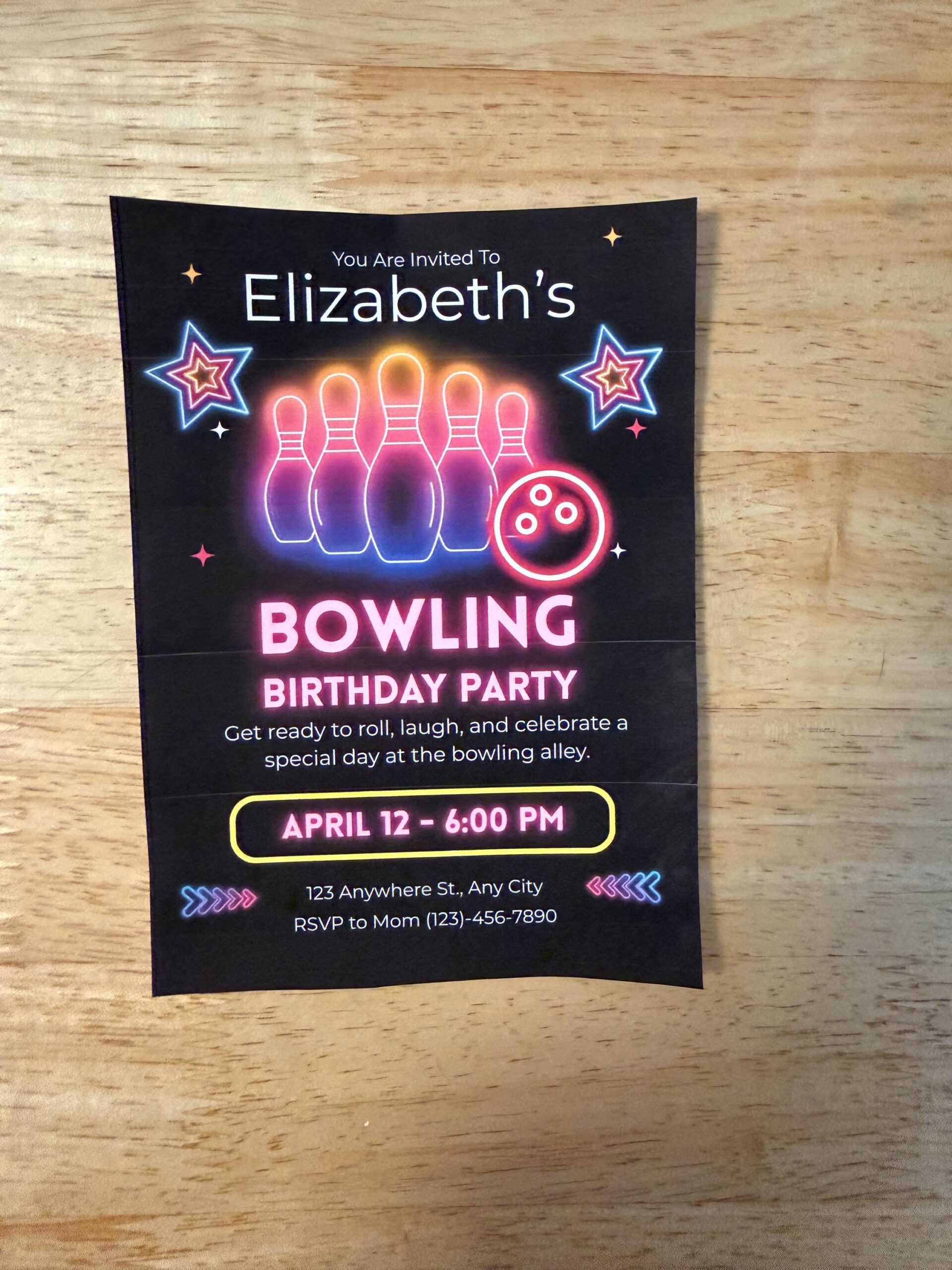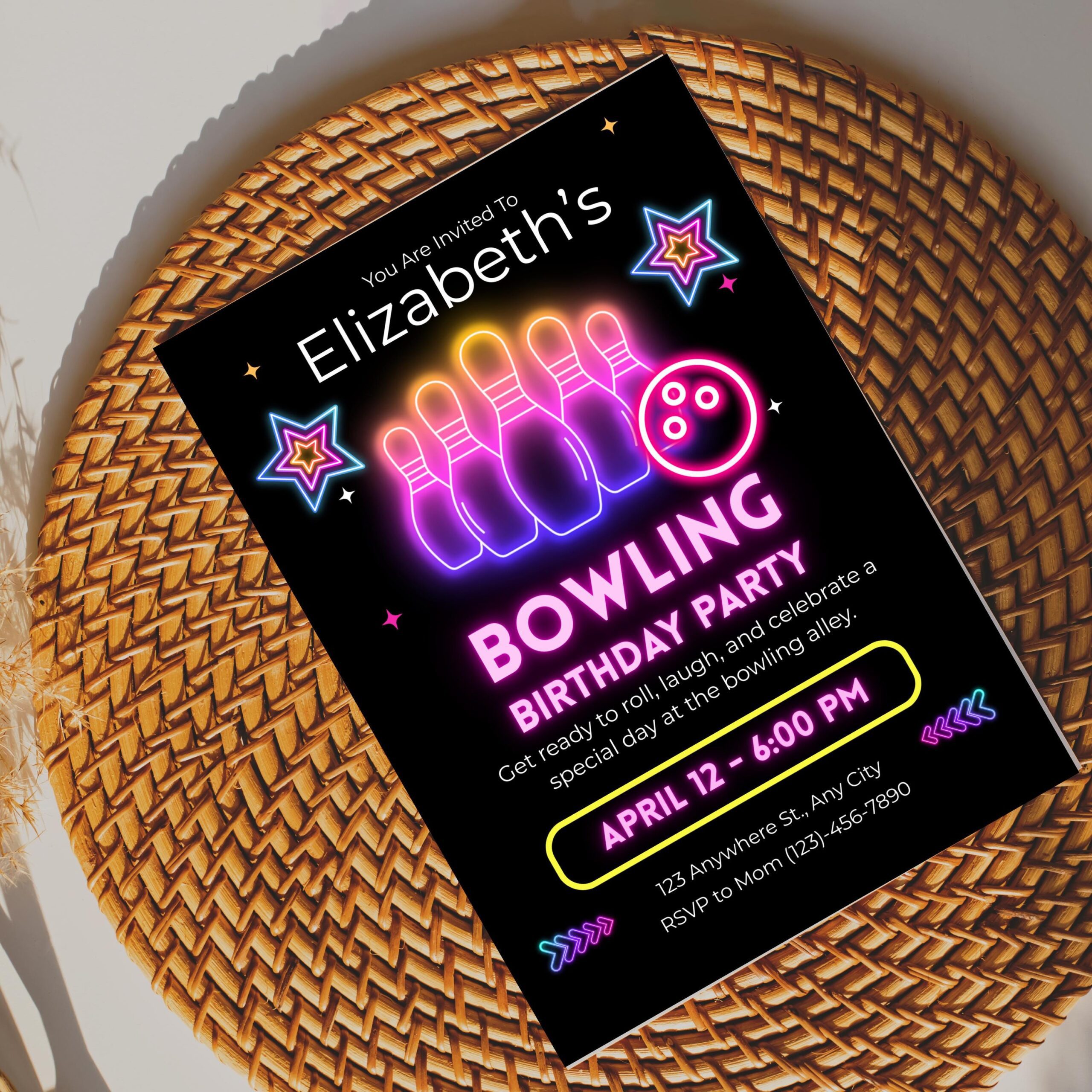 Whether you're planning a birthday celebration at a bowling alley or hosting a glow-themed party, this editable invitation makes it easy to personalize your event details and impress your guests.